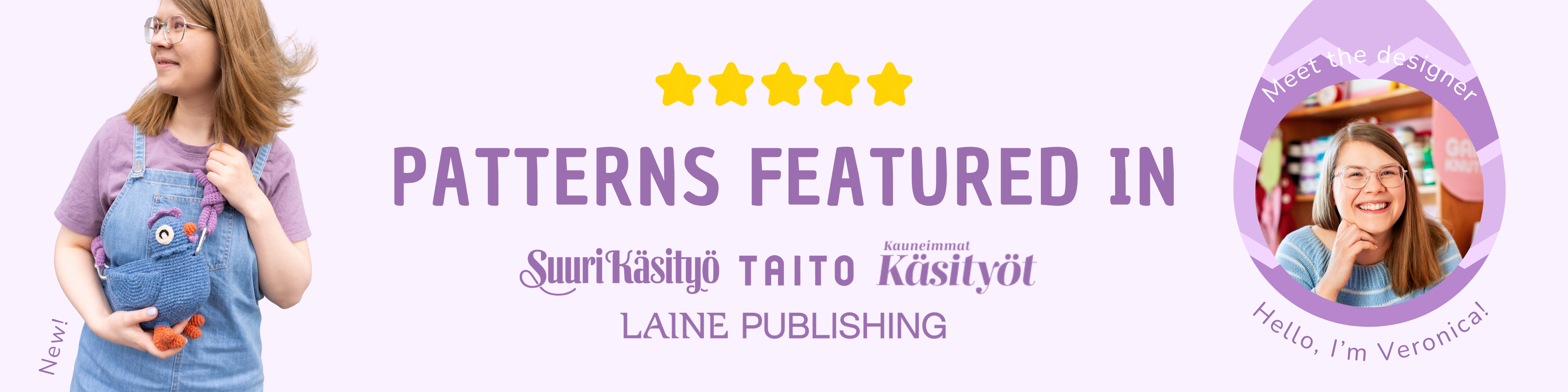 I'm a craft teacher and a crochet toy designer based in a small town on the Finnish westcoast. I love to crochet goofy characters in colorful yarns and with happy eyes.