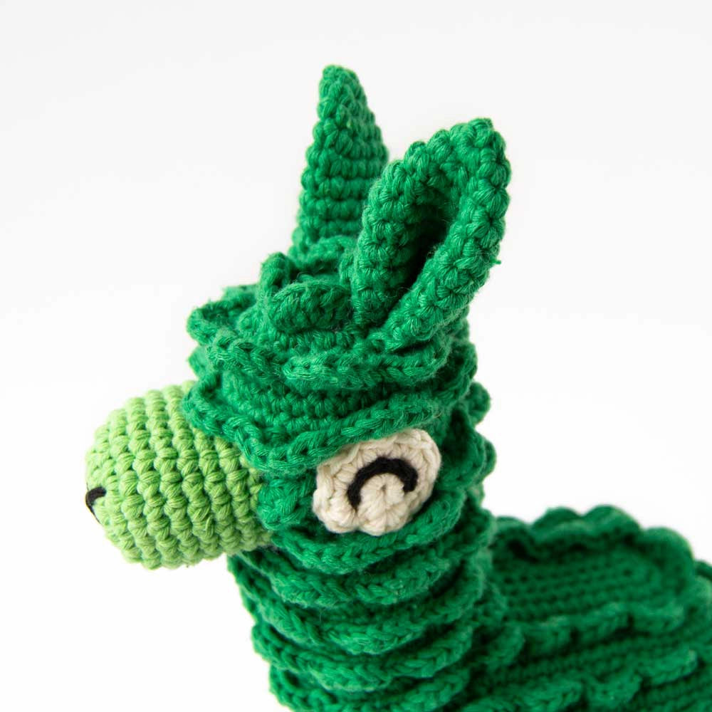 Crochet your own adorable amigurumi llama with this downloadable crochet pattern for Frida the llama. Frida is a 22 cm big llama with Christmas tree green fur, festive string lights, and happy eyes. Frida the llama makes the perfect gift and lights up any child's (or adult's) room!