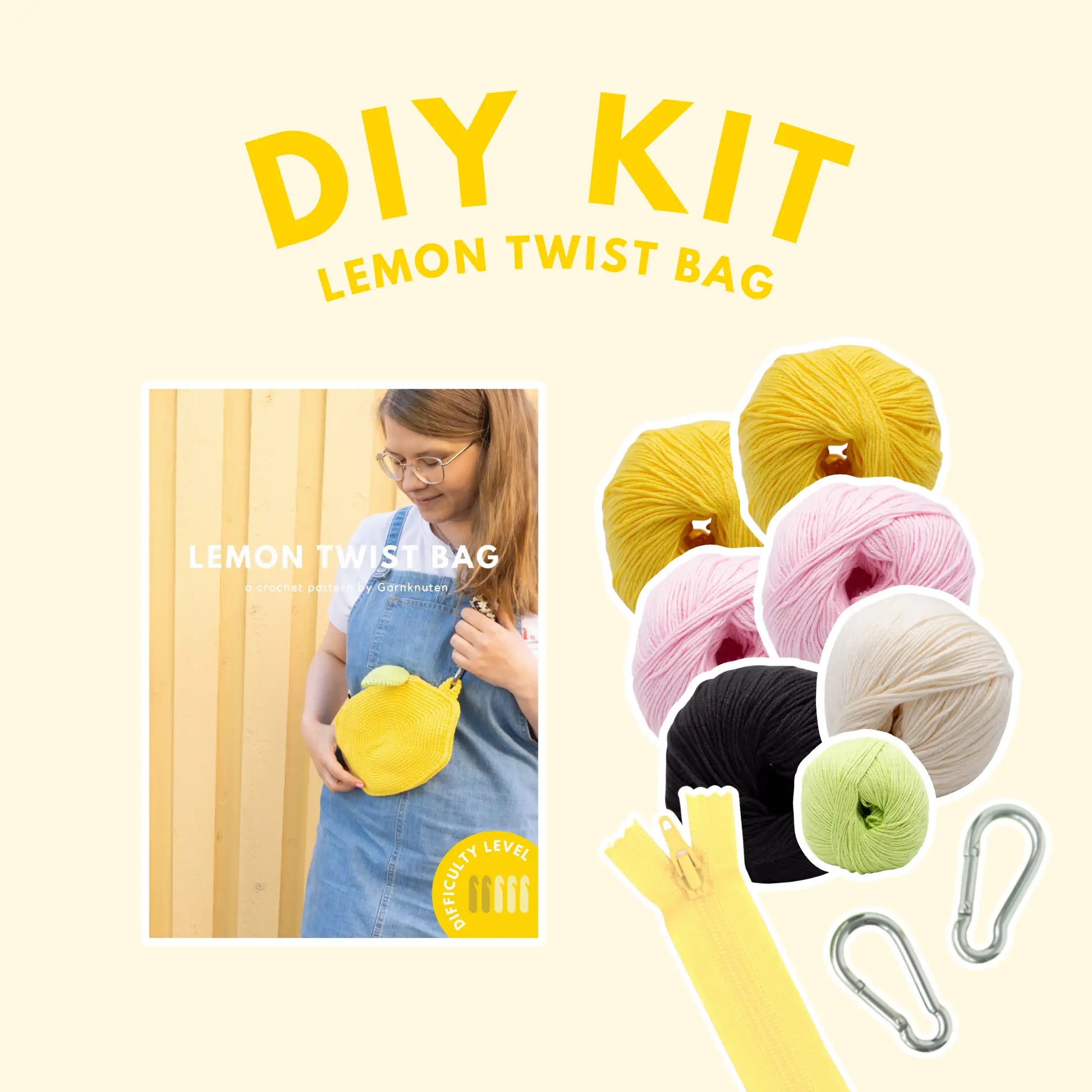 Too tired to go out looking for yarn and materials, but dying to make your own Lemon Twist bag? Then this yarn kit is for you!