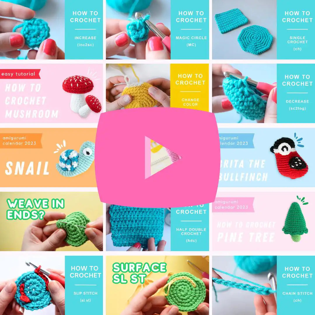 In this chapter, you'll learn 6 basic stitches you need to know to successfully crochet your first amigurumi. The tutorials includes written instructions, pictures, and links to video tutorials.