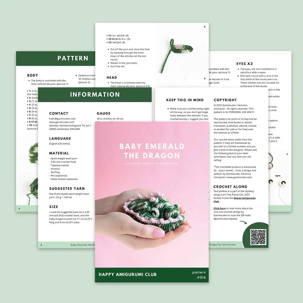 #016 Baby Emerald the Dragon | Crochet amigurumi PDF pattern