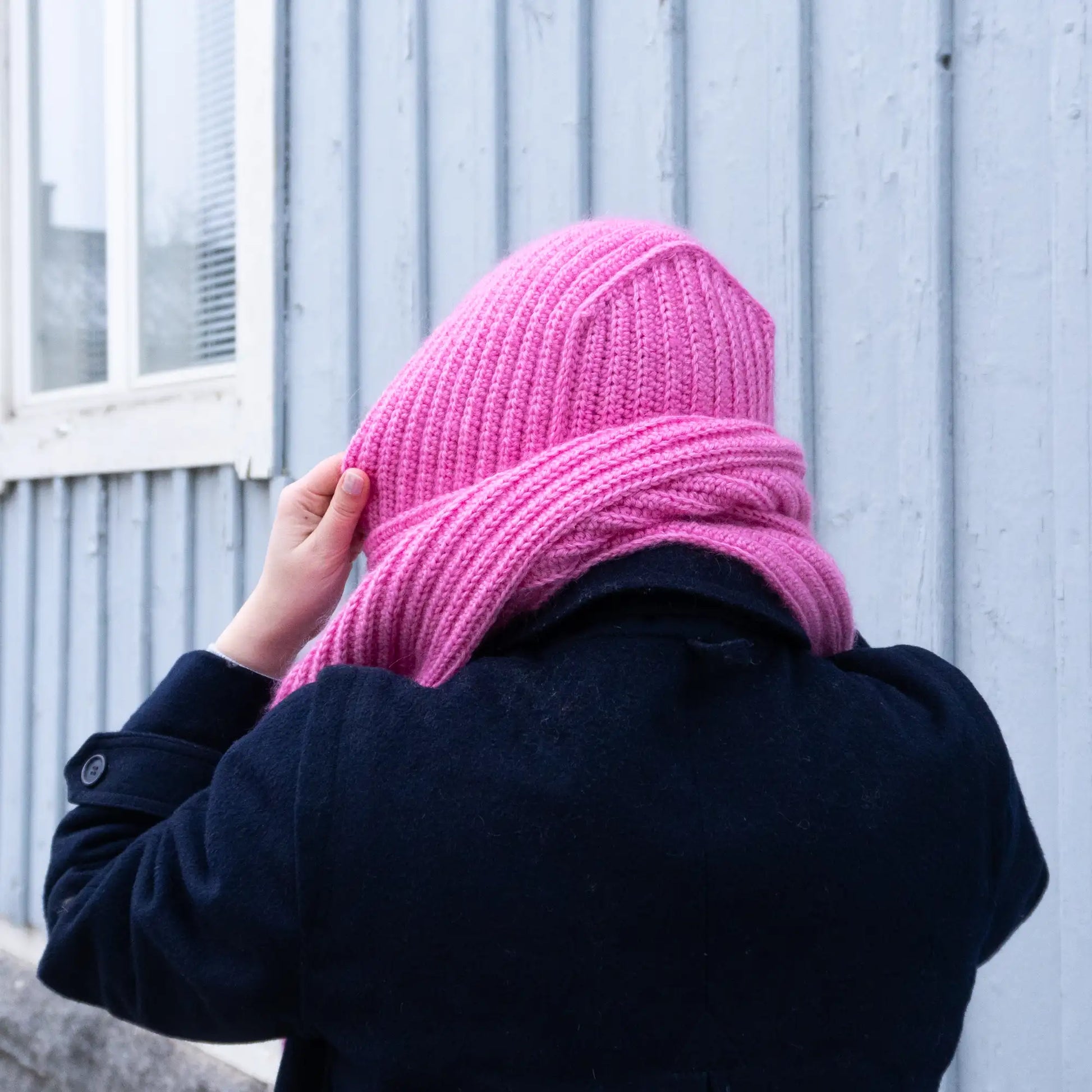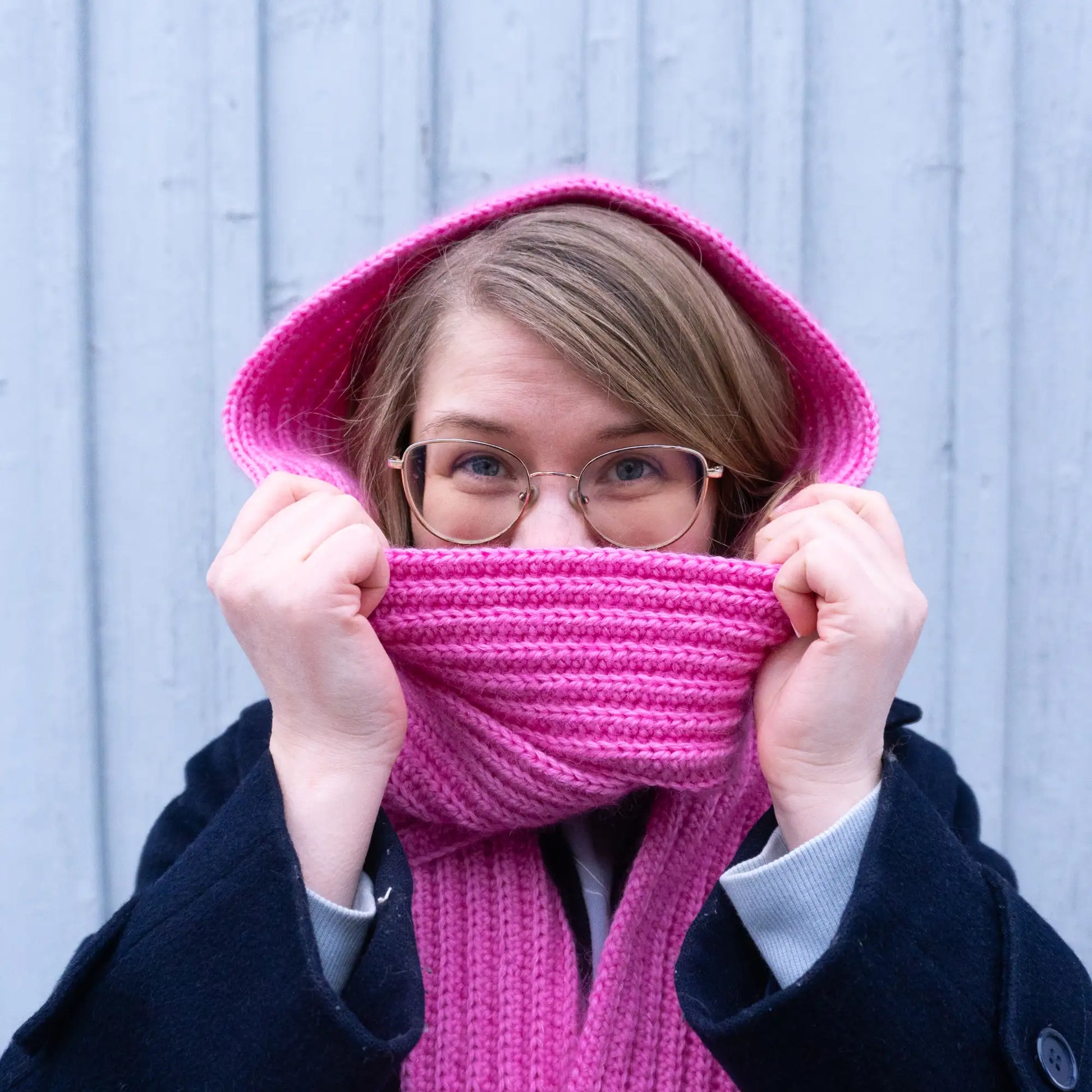 Crochet your own cosy ribbed hooded shawl with this downloadable PDF crochet pattern. The Flamingo Hug Hood is a soft scarf with a hood that will keep you just as warm and cosy as a flamingos hug. The scarf is 295 cm (116") long (total length) and the hood is 23 cm (9") high and 21.5 cm (8.5") deep.