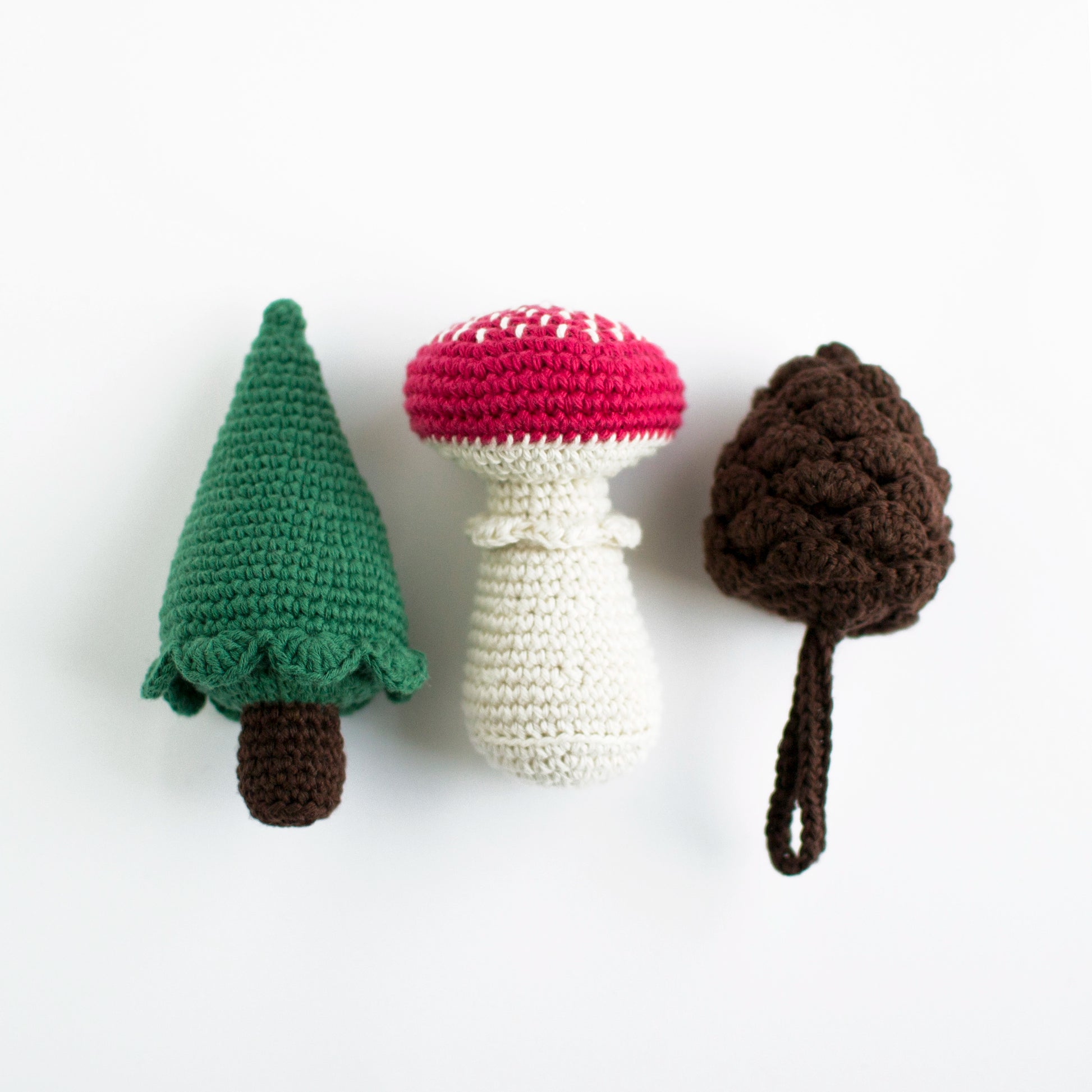 This pattern bundle is a tribute to the Finnish forest! This bundle contains 3 amigurumi patterns, a mushroom, pine cone, and pine tree pattern. These forest pieces are the perfect toys or decorative Christmas elements for your home.