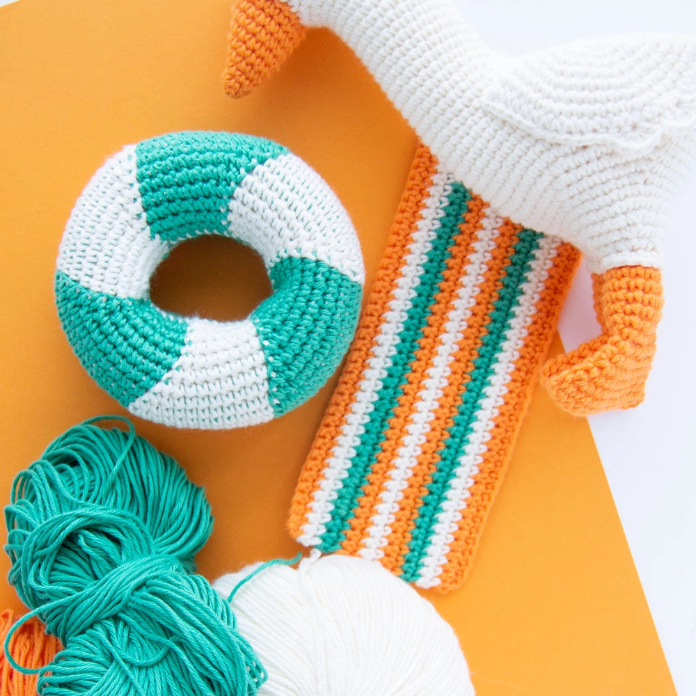 Crochet your own adorable amigurumi goose with this downloadable crochet pattern for Gerda the goose. Gerda is an 18 cm big happy goose with orange feet and her favorite swim accessories. Gerda the goose makes the perfect gift and lights up any child's (or adult's) room!