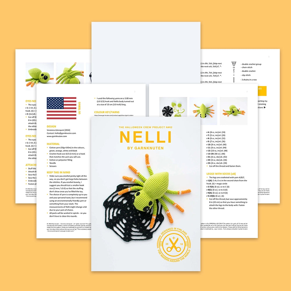 All Garnknuten patterns are easy to follow and have a pedagogical beginner-friendly design. The Nelli the spider pattern is a downloadable PDF with step-by-step instructions and helpful pictures that will smoothly guide you through the making process. Leaving you creative and inspired for your next amigurumi project!