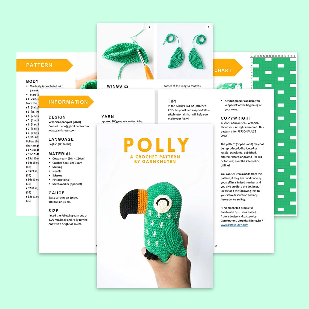 All Garnknuten patterns are easy to follow and have a pedagogical beginner-friendly design. The Polly the parrot pattern is a downloadable PDF with step-by-step instructions and helpful pictures that will smoothly guide you through the making process. Leaving you creative and inspired for your next amigurumi project!