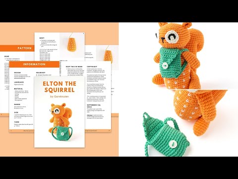 Crochet your own adorable amigurumi squirrel with this downloadable crochet pattern for Elton the squirrel. Elton is an 11 cm small happy squirrel with a cute dotted body and his favorite green backpack.