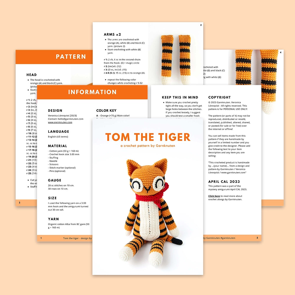 Tom the Tiger was a part of the APRIL CAL 2023. Read more about Garnknutens annual crochet alongs here.